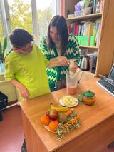 20 октября 2023 года в рамках проекта «Народные праздники и традиции» учащиеся 6Г и 6Д классов приняли участие в мероприятии «Витаминный коктейль», где ребята самостоятельно смешивали различные ягоды и фрукты с помощью блендера и готовили коктейли для себя и педагогов. Ученики смогли вспомнить, какие виды ягод и фруктов существуют, а также их полезные свойства, рассмотрели различные картинки плодов осени и попробовали облепиховый чай.