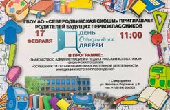 17 февраля в 11.00 ГБОУ АО "Северодвинская СКОШИ" приглашает родителей будущих первоклассников на День открытых дверей. В программе: