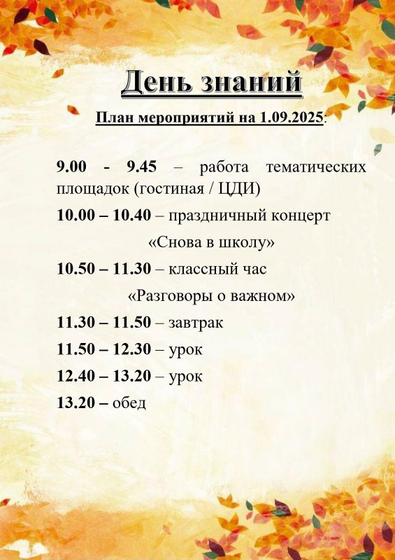 Предлагаем ознакомиться с планом мероприятий на 1.09.2025