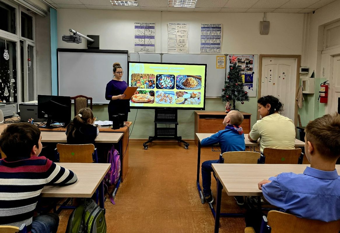 В преддверии празднования Нового года в нашей школе для обучающихся 3В, 4В и 5В классов прошло замечательное мероприятие под названием "Мозаика новогодних чудес: новогодние традиции народов России".