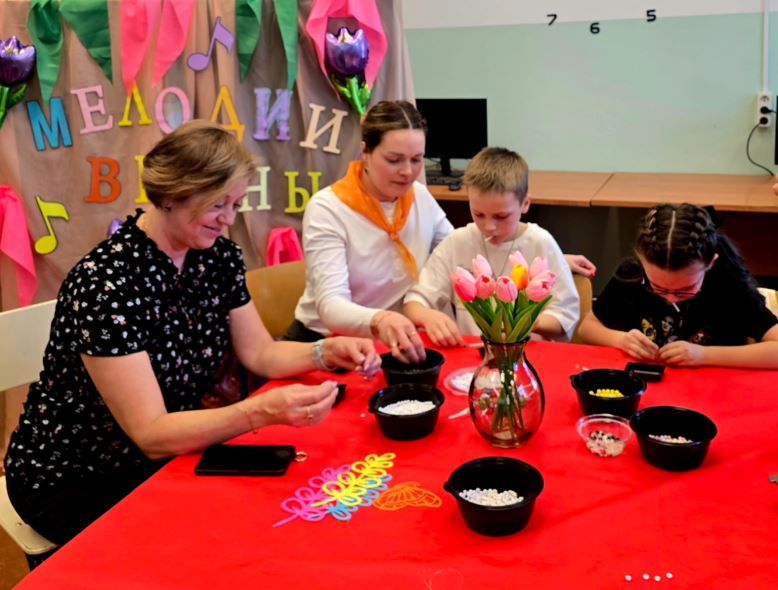 Завершением встречи стал творческий мастер-класс по изготовлению браслетов из бусин. Дети, родители и педагоги вместе создавали яркие украшения – маленькие сувениры на память о тёплой весенней встрече.